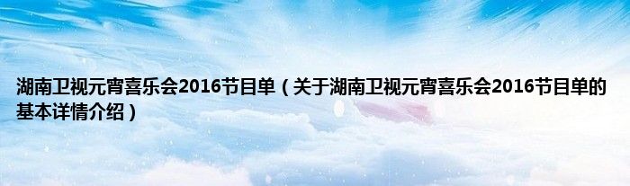 本文关于湖南卫视元宵喜乐会2016节目单的基本详情介绍就讲解完毕,希望对大家有所帮助。