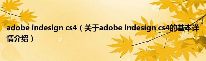 本文关于adobe indesign cs4的基本详情介绍就讲解完毕,希望对大家有所帮助。