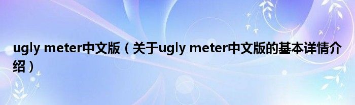 本文关于ugly meter中文版的基本详情介绍就讲解完毕,希望对大家有所帮助。