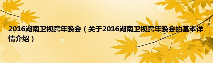本文关于2016湖南卫视跨年晚会的基本详情介绍就讲解完毕,希望对大家有所帮助。