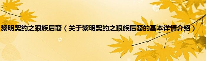 本文关于黎明契约之狼族后裔的基本详情介绍就讲解完毕,希望对大家有所帮助。
