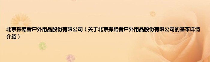 本文关于北京探路者户外用品股份有限公司的基本详情介绍就讲解完毕,希望对大家有所帮助。