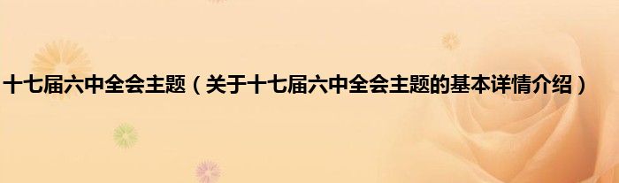 本文关于十七届六中全会主题的基本详情介绍就讲解完毕,希望对大家有所帮助。