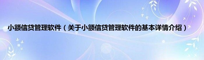 小额信贷管理软件(关于小额信贷管理软件的基本详情介绍)