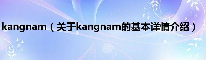 本文关于kangnam的基本详情介绍就讲解完毕,希望对大家有所帮助。