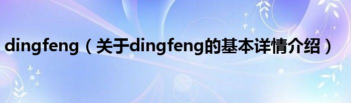 本文关于dingfeng的基本详情介绍就讲解完毕,希望对大家有所帮助。