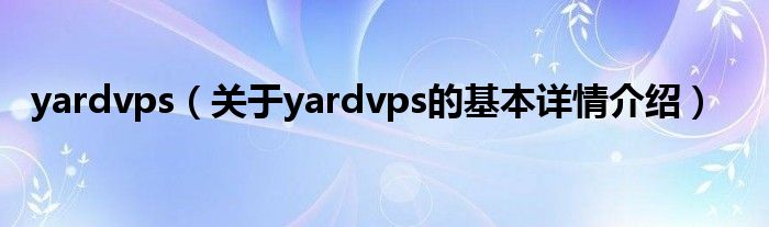 大家好我是小蝌蚪,yardvps,关于yardvps的基本详情介绍很多人还不知道,那么现在让我们一起来看看吧!