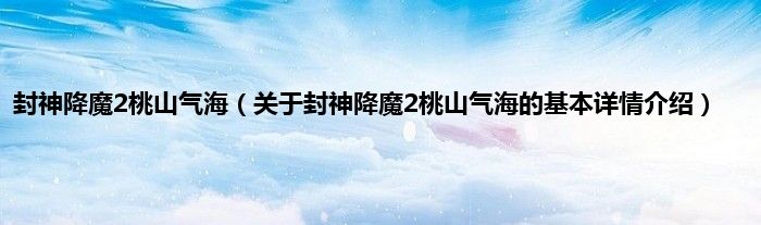 封神降魔2桃山气海(关于封神降魔2桃山气海的基本详情介绍)