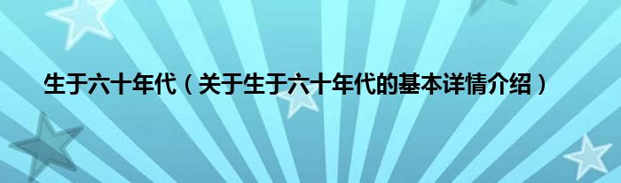本文关于生于六十年代的基本详情介绍就讲解完毕,希望对大家有所帮助。