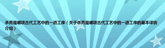 本文关于杀青是哪项古代工艺中的一道工序的基本详情介绍就讲解完毕,希望对大家有所帮助。