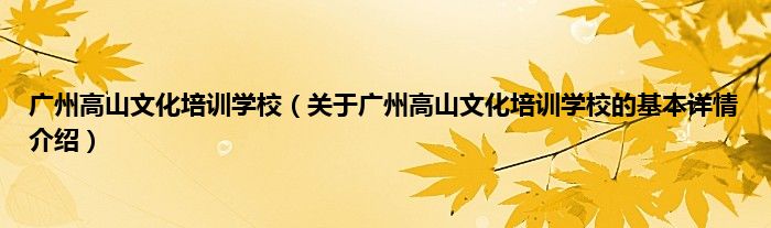 本文关于广州高山文化培训学校的基本详情介绍就讲解完毕,希望对大家有所帮助。