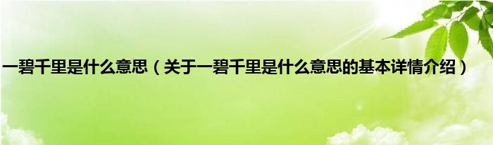 一碧千里是什么意思(关于一碧千里是什么意思的基本详情介绍)