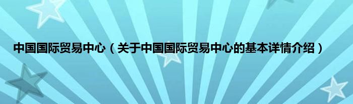 本文关于中国国际贸易中心的基本详情介绍就讲解完毕,希望对大家有所帮助。