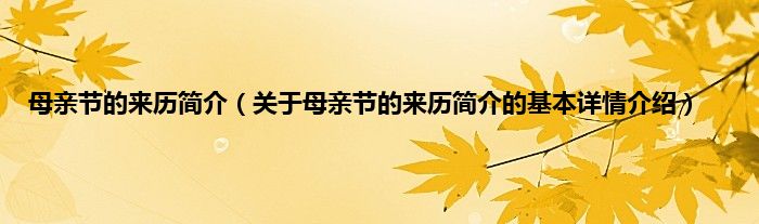 本文关于母亲节的来历简介的基本详情介绍就讲解完毕,希望对大家有所帮助。