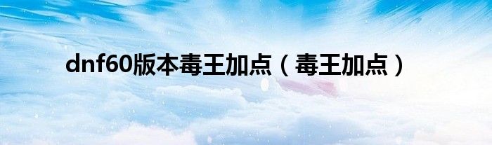 大家好,小问来为大家解答以上问题。dnf60版本毒王加点,毒王加点这个很多人还不知道,现在让我们一起来看看吧!