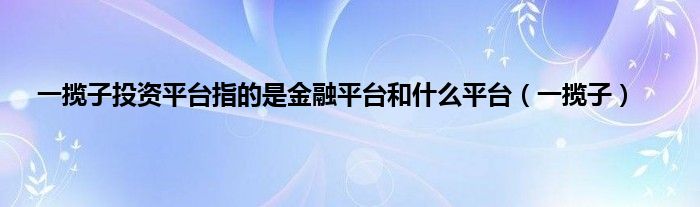 大家好,小问来为大家解答以上问题。一揽子投资平台指的是金融平台和什么平台,一揽子这个很多人还不知道,现在让我们一起来看看吧!