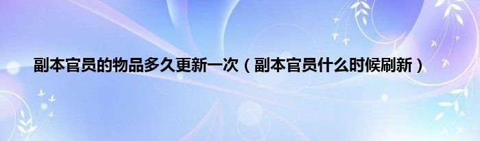 大家好,小问来为大家解答以上问题。副本官员的物品多久更新一次,副本官员什么时候刷新这个很多人还不知道,现在让我们一起来看看吧!