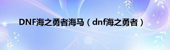 大家好,小问来为大家解答以上问题。DNF海之勇者海马,dnf海之勇者这个很多人还不知道,现在让我们一起来看看吧!