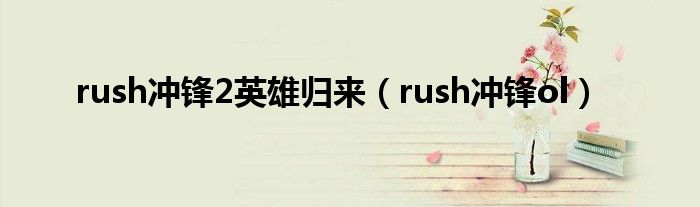大家好,小问来为大家解答以上问题。rush冲锋2英雄归来,rush冲锋ol这个很多人还不知道,现在让我们一起来看看吧!