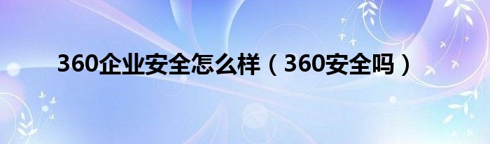 以上就是【360企业安全怎么样,360安全吗】相关内容。