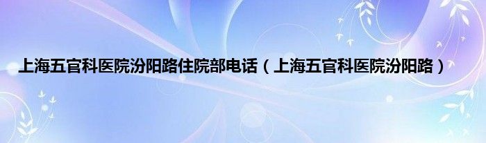 大家好,小问来为大家解答以上问题。上海五官科医院汾阳路住院部电话,上海五官科医院汾阳路这个很多人还不知道,现在让我们一起来看看吧!