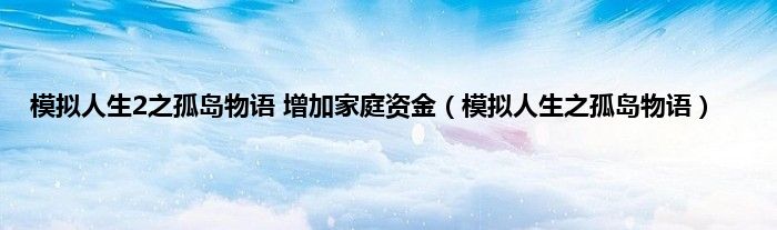 模拟人生2之孤岛物语增加家庭资金(模拟人生之孤岛物语)