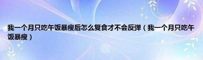 我一个月只吃午饭暴瘦后怎么复食才不会反弹(我一个月只吃午饭暴瘦)