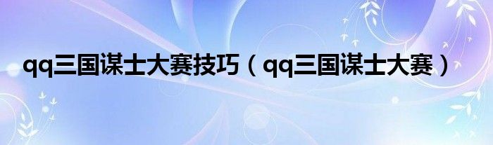 qq三国谋士大赛技巧(qq三国谋士大赛)