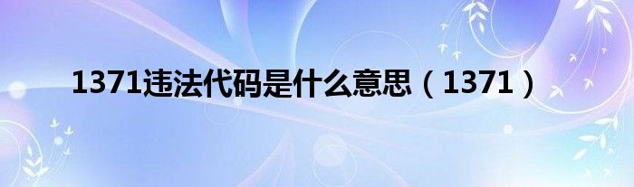 大家好,小问来为大家解答以上问题。1371违法代码是什么意思,1371这个很多人还不知道,现在让我们一起来看看吧!