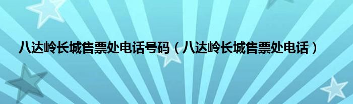 以上就是【八达岭长城售票处电话号码,八达岭长城售票处电话】相关内容。