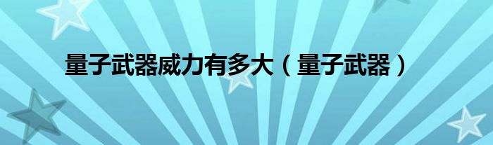 大家好,小问来为大家解答以上问题。量子武器威力有多大,量子武器这个很多人还不知道,现在让我们一起来看看吧!