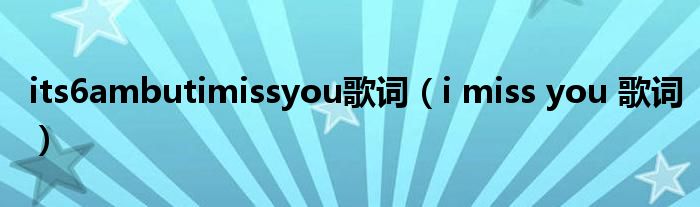 以上就是【its6ambutimissyou歌词,i miss you 歌词】相关内容。