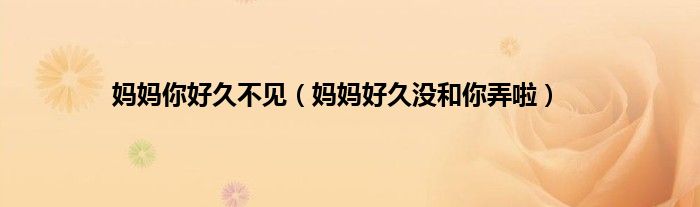 大家好,小问来为大家解答以上问题。妈妈你好久不见,妈妈好久没和你弄啦这个很多人还不知道,现在让我们一起来看看吧!