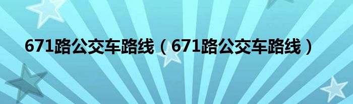 以上就是【671路公交车路线,671路公交车路线】相关内容。