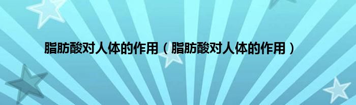 大家好,小问来为大家解答以上问题。脂肪酸对人体的作用,脂肪酸对人体的作用这个很多人还不知道,现在让我们一起来看看吧!