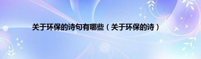 以上就是【关于环保的诗句有哪些,关于环保的诗】相关内容。
