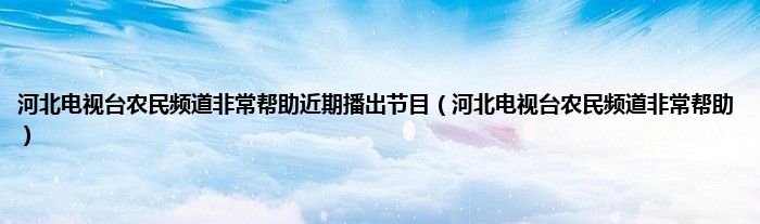 河北电视台农民频道非常帮助近期播出节目(河北电视台农民频道非常帮助)