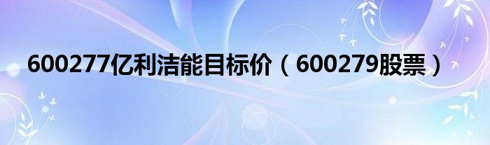 大家好,小问来为大家解答以上问题。600277亿利洁能目标价,600279股票这个很多人还不知道,现在让我们一起来看看吧!