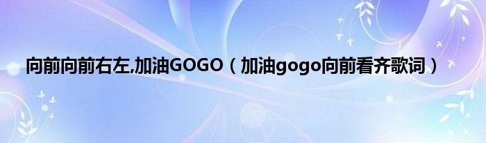 以上就是【向前向前右左,加油GOGO,加油gogo向前看齐歌词】相关内容。