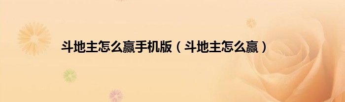 斗地主怎么赢手机版(斗地主怎么赢)