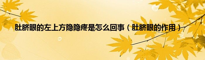 以上就是【肚脐眼的左上方隐隐疼是怎么回事,肚脐眼的作用】相关内容。