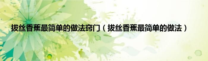 以上就是【拔丝香蕉最简单的做法窍门,拔丝香蕉最简单的做法】相关内容。