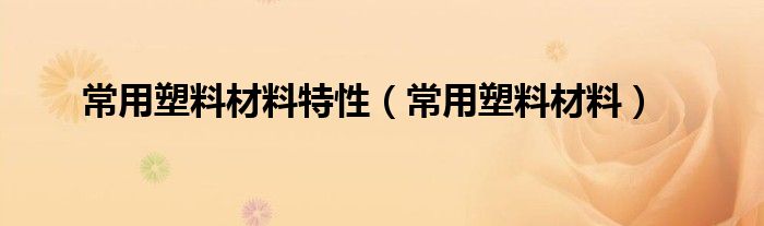 以上就是【常用塑料材料特性,常用塑料材料】相关内容。