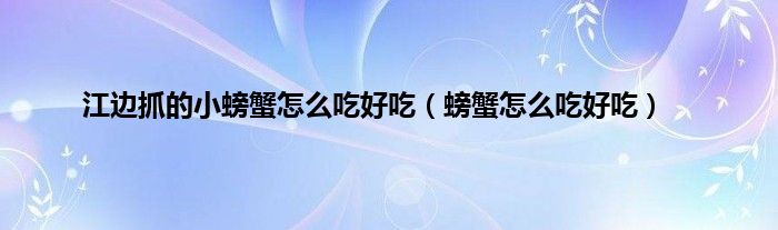 大家好,小问来为大家解答以上问题。江边抓的小螃蟹怎么吃好吃,螃蟹怎么吃好吃这个很多人还不知道,现在让我们一起来看看吧!