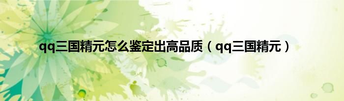 以上就是【qq三国精元怎么鉴定出高品质,qq三国精元】相关内容。