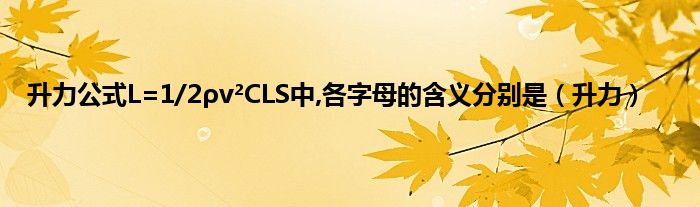 以上就是【升力公式L=1/2ρv²CLS中,各字母的含义分别是,升力】相关内容。