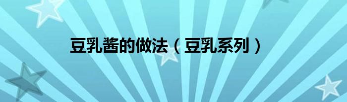 大家好,小问来为大家解答以上问题。豆乳酱的做法,豆乳系列这个很多人还不知道,现在让我们一起来看看吧!