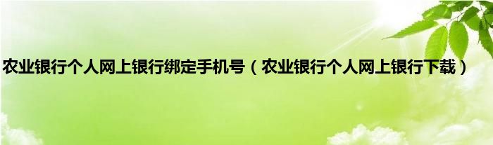 大家好,小问来为大家解答以上问题。农业银行个人网上银行绑定手机号,农业银行个人网上银行下载这个很多人还不知道,现在让我们一起来看看吧!