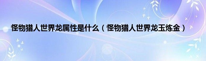 大家好,小问来为大家解答以上问题。怪物猎人世界龙属性是什么,怪物猎人世界龙玉炼金这个很多人还不知道,现在让我们一起来看看吧!