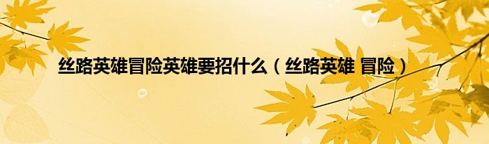 以上就是【丝路英雄冒险英雄要招什么,丝路英雄 冒险】相关内容。